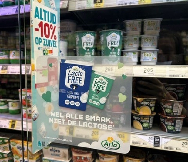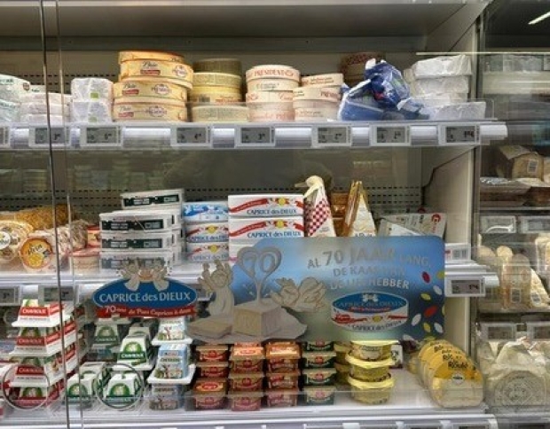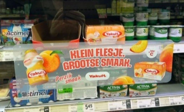The fridge or freezer door gets decorated with your creation on a sticker. Ideal to highlight your product(s) from outside the fridge/freezer, with them on display behind the creation.