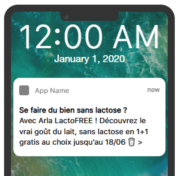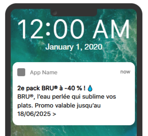 A Push Notification is sent to a specific target, limited to 100.000 contacts. It's ideal to highlight an existing promotion and in combination with other channels to boost performance results.